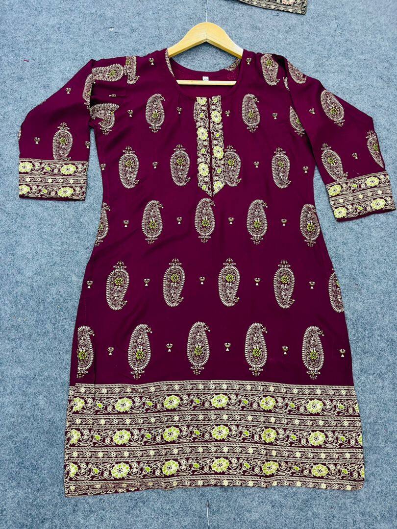 Kurti Fabric :- heavy REYON with sequence embroidery work